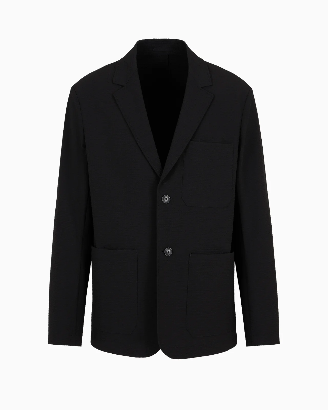 Single-breasted jacket with three front patch pockets. Made of technical seersucker, one of Armani’s favourite textures. The ultra-lightweight fabric gives the entire piece a dynamic, crinkly feel. Product Code: 6D1GA21NSCZ10999 Details Composition 90% Polyamide 10% Elastane Seersucker Single-breasted Lapel collar Two-button closure Long sleeves Patch pocket for a pocket square Side patch pockets Unlined garment Fitting The model is 188 cm tall and is wearing size 48/M (Italian Size)