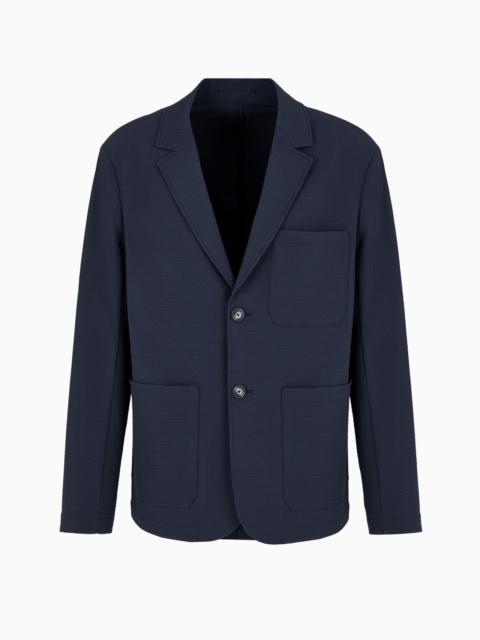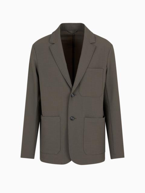 Single-breasted jacket in technical seersucker fabric