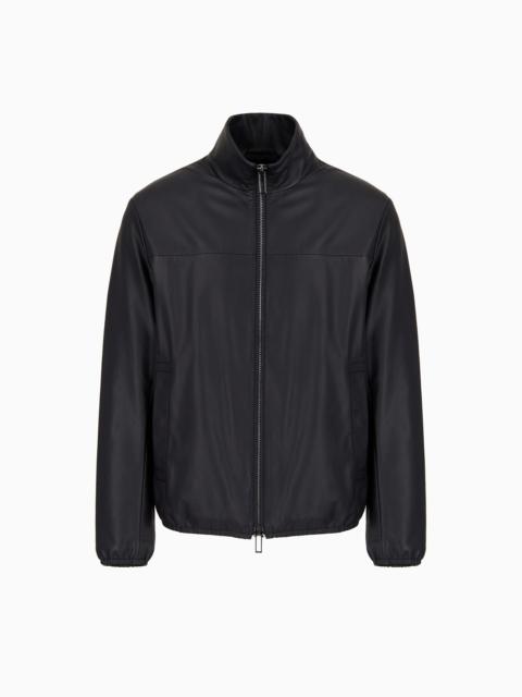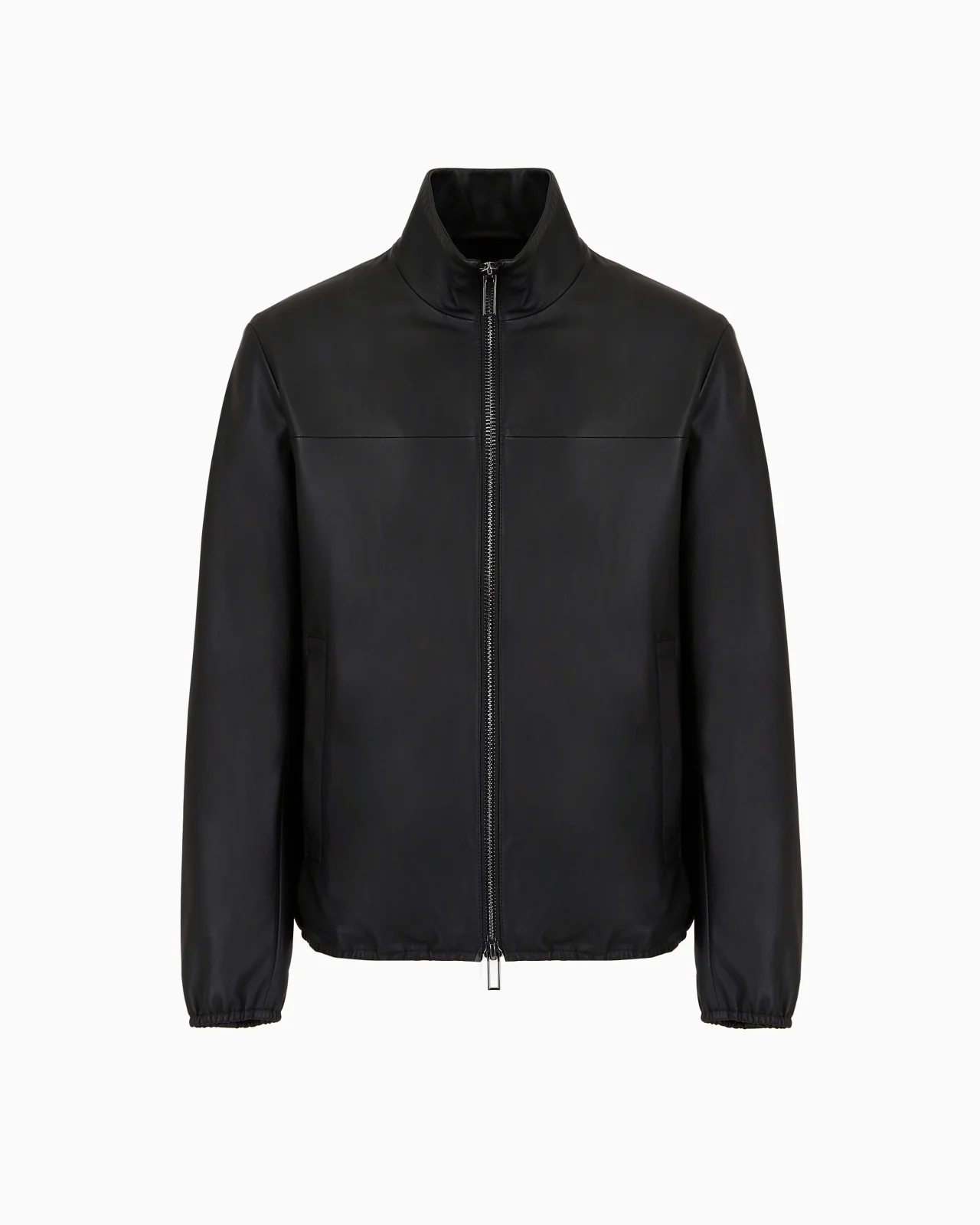 Made from supple, high-quality nappa lambskin, this blouson is defined by a modern design, making it perfect for practical, everyday outfits. This item belongs to the Essentials clothing selection, the Emporio Armani capsule collection that is an evergreen statement of style: an ongoing collection with clean, well-designed shapes for a wardrobe that meets the demands of any season. These “essential”, versatile pieces are a must-have for the male wardrobe. Product Code: 01R55P01P541999 Details Composition 100% Lambskin Soft-touch nappa leather Full-zip closure Long sleeves Stretch cuffs Elasticated hem Stretch-serge lining Fitting The model is 188 cm tall and is wearing size 48/M (Italian Size)