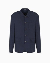 Shirt jacket with a classic shirt collar and front pockets, made of technical seersucker, one of Armani’s favourite textures. The ultra-lightweight fabric gives the entire piece a dynamic, crinkly feel. A versatile garment with a casual yet sophisticated attitude, it offers all the comfort of a shirt and can also be worn as a jacket, with an easier attitude than real outerwear. Length: 72 cm Seersucker Classic collar Front buttoning Front patch pockets Long sleeves Button cuffs Unlined garment Product Code: EM000183TE16795UB081