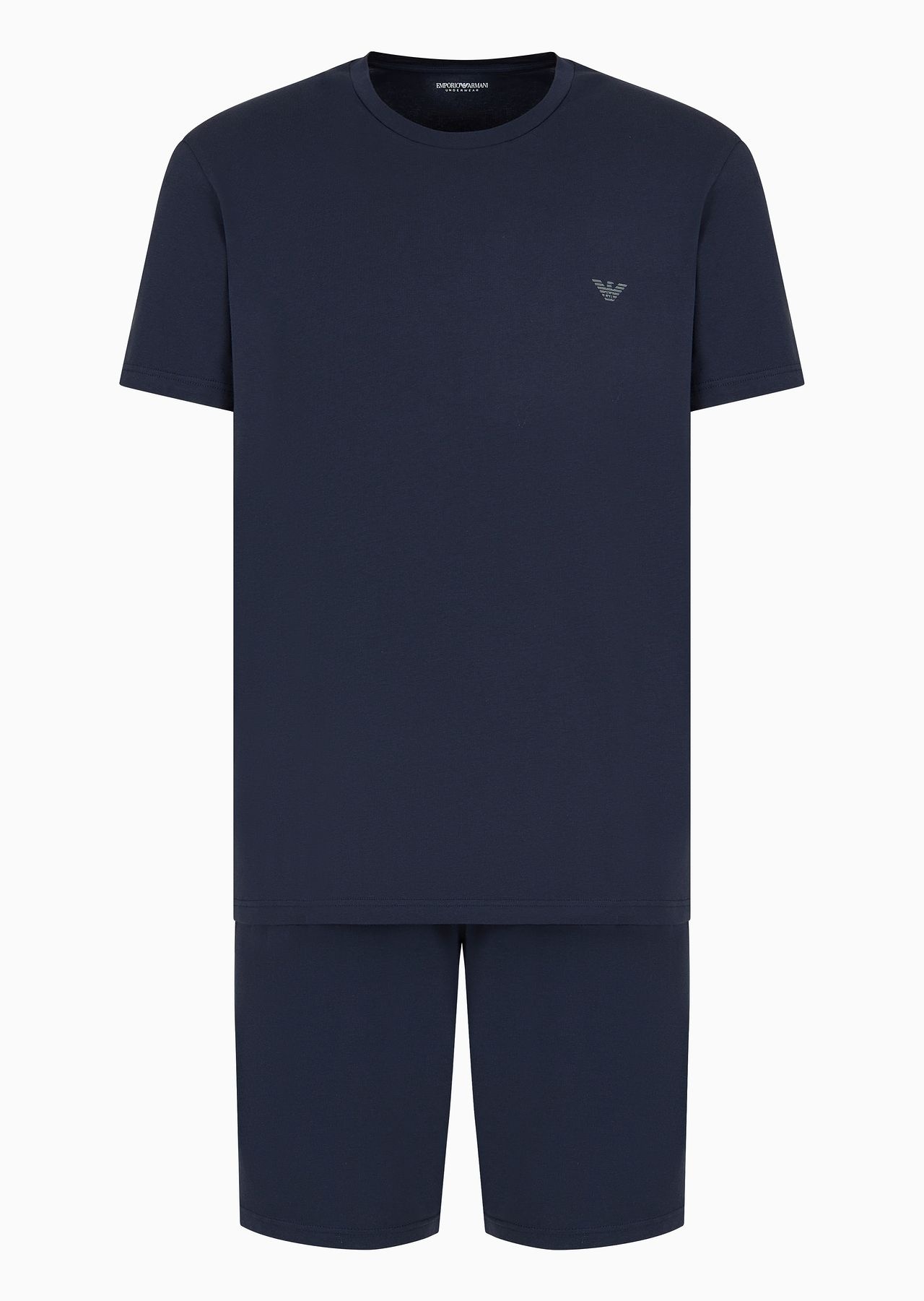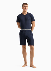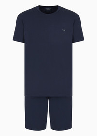 Stretch jersey 2-piece pyjamas Crew-neck T-shirt Front micro eagle Elasticated-waist Bermuda shorts Product Code: 1115734F720106236 Details Composition 95% Cotton 5% Elastane Jersey Brand logo Solid color Crewneck Short sleeves Fitting The model is 188 cm tall and is wearing size 48/M (Italian Size)