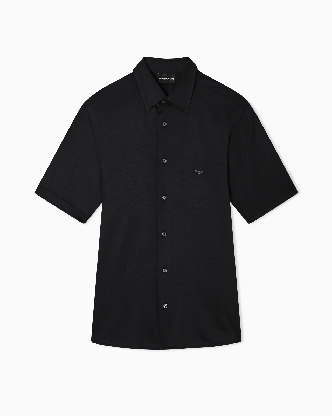 Slim-fit shirt made of a Lyocell-blend jersey, a light and breathable fabric that offers superior comfort. This item belongs to the Essentials selection, the Emporio Armani offering that is an evergreen statement of style: an ongoing collection with clean, well-designed shapes for a wardrobe that meets the demands of any season. These “essential”, versatile pieces are a must-have for the male wardrobe. Slim fit Jersey Classic collar Front buttoning Short sleeves Back yoke Product Code: EM004603AF10017UC001