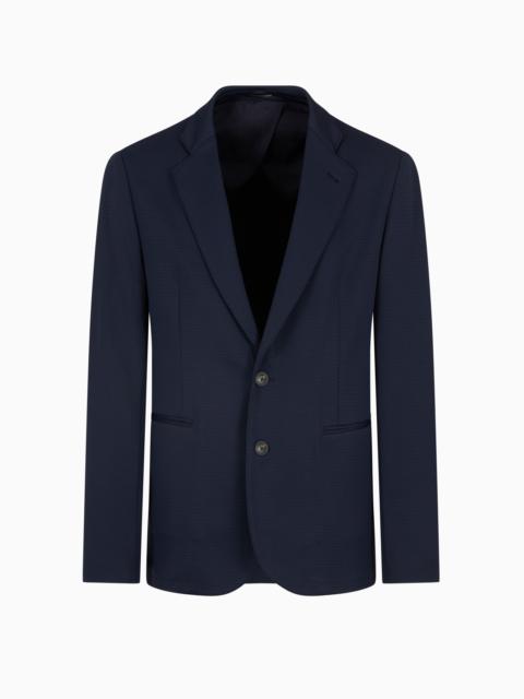 SINGLE-BREASTED JACKET IN STRETCH PIQUÉ TECHNICAL JERSEY