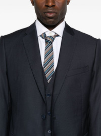 single-breasted suit Highlights - Navy blue - Front button fastening - Chest welt pocket - Two side flap pockets - Two rear jetted pockets Imported Composition Outer: Virgin Wool 93%, Polyamide 7% Lining: Viscose 55%, Acetate 45% SIZE & FIT Model measurements Height 6 ft 0 in(1.84 m) Bust/Chest 35.82 in(91 cm) Hips 37 in(94 cm) Waist 28.34 in(72 cm) FittingInformation Tailored for a slim fit, this waistcoat sits just away from the body The unfinished hems allow for the length to be altered Made from a midweight non-stretch fabric