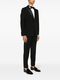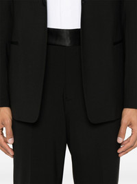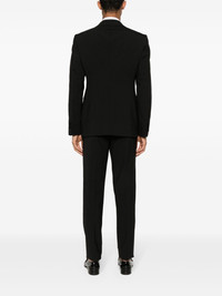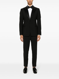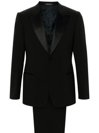 single-breasted suit Highlights - Black - Wool blend - Stretch-design - Satin trim Made in Italy Composition Outer: Wool 96%, Polyester 57%, Silk 43%, Elastane 4% Lining: Cupro 100% SIZE & FIT Model measurements Height 6 ft 2 in(1.87 m) Bust/Chest 38.18 in(97 cm) Hips 36.61 in(93 cm) Waist 29.13 in(74 cm) FittingInformation Tailored for a slim fit, offering a comfortable fit that sits just away from the body The unfinished hems allow for the length to be altered Made from a midweight fabric This piece fits true to size – take your usual size