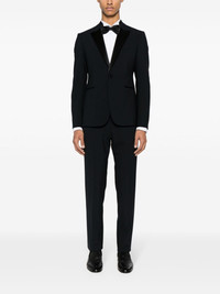 single-breasted suit Highlights - Prussian blue - Virgin wool blend - Satin trim - Tailored design - Notched lapels - Front button fastening - Shoulder pads - Long sleeves - Buttoned cuffs - Chest welt pocket - Two front jetted pockets - Internal jetted pockets - English rear vents - Satin lining - Satin trim - Mid-rise - Concealed front button, hook and zip fastening - Two side inset pockets - Two rear button-fastening jetted pockets - Straight leg Made in Italy Composition Outer: Virgin Wool 96%, Polyester 57%, Silk 43%, Elastane 4% Lining: Polyester 100%, Viscose 100% SIZE & FIT Model measurements Height 6 ft 2 in(1.87 m) Bust/Chest 38.18 in(97 cm) Hips 36.61 in(93 cm) Waist 29.13 in(74 cm) FittingInformation Tailored for a slim fit, offering a comfortable fit that sits just away from the body The unfinished hems allow for the length to be altered Made from a midweight fabric This piece fits true to size – take your usual size Washing instructions Dry Clean Only