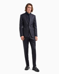 Regular-fit suit consisting of a single-breasted jacket with notched lapels, straight shoulders with a statement cigarette sleeve head roll and a close fit at the back to accentuate the waist, enveloping the silhouette in total comfort, and matching classic-cut trousers with no front pleats. The modern design of the suit combines with the texture of the micro-effect jacquard virgin wool and silk blend. Product Code: EM000482TE110471UB109 Details Composition 75% Virgin Wool 25% Mulberry silk Regular fit Drop: 7 Single-breasted jacket Jacket length: 73 cm Notched lapels Two-button closure Long sleeves Side welt pockets with flap Smooth back Lined garment Trousers without pleats Waist with belt loops Zip and button closure Ankle cuffs: 17 cm Made in Italy Fitting Regular fit The model is 188 cm tall and is wearing size 48