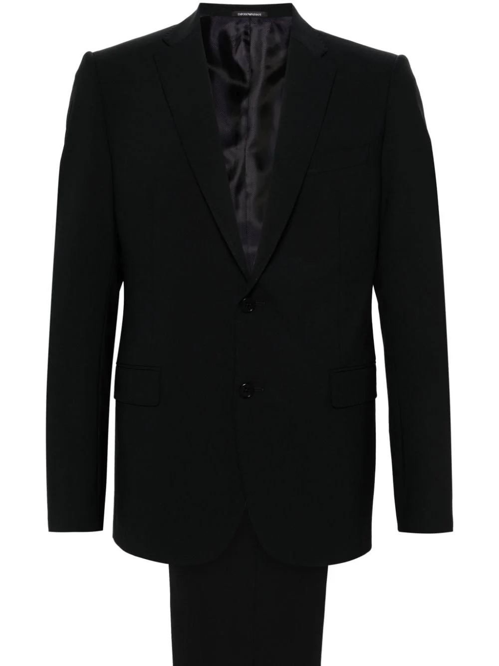 single-breasted suit Highlights - Prussian blue - Virgin wool blend - Tailored design - Notched lapels - Front button fastening - Shoulder pads - Long sleeves - Buttoned cuffs - Chest welt pocket - Two front flap pockets - English rear vents - Full lining - Mid-rise - Pressed crease - Belt loops - Concealed front button, hook and zip fastening - Two side slash pockets - Two rear button-fastening jetted pockets - Straight leg Imported Composition Outer: Virgin Wool 96%, Elastane 4% Lining: Viscose 55%, Acetate 45% SIZE & FIT Model measurements Height 6 ft 2 in(1.87 m) Bust/Chest 37.79 in(96 cm) Hips 37.79 in(96 cm) Waist 30.31 in(77 cm) FittingInformation Tailored for a slim fit, offering a comfortable fit that sits just away from the body The unfinished hems allow for the length to be altered Made from a midweight stretch fabric, this piece offers elasticity and flexibility when worn This piece fits true to size – take your usual size Washing instructions Dry Clean Only