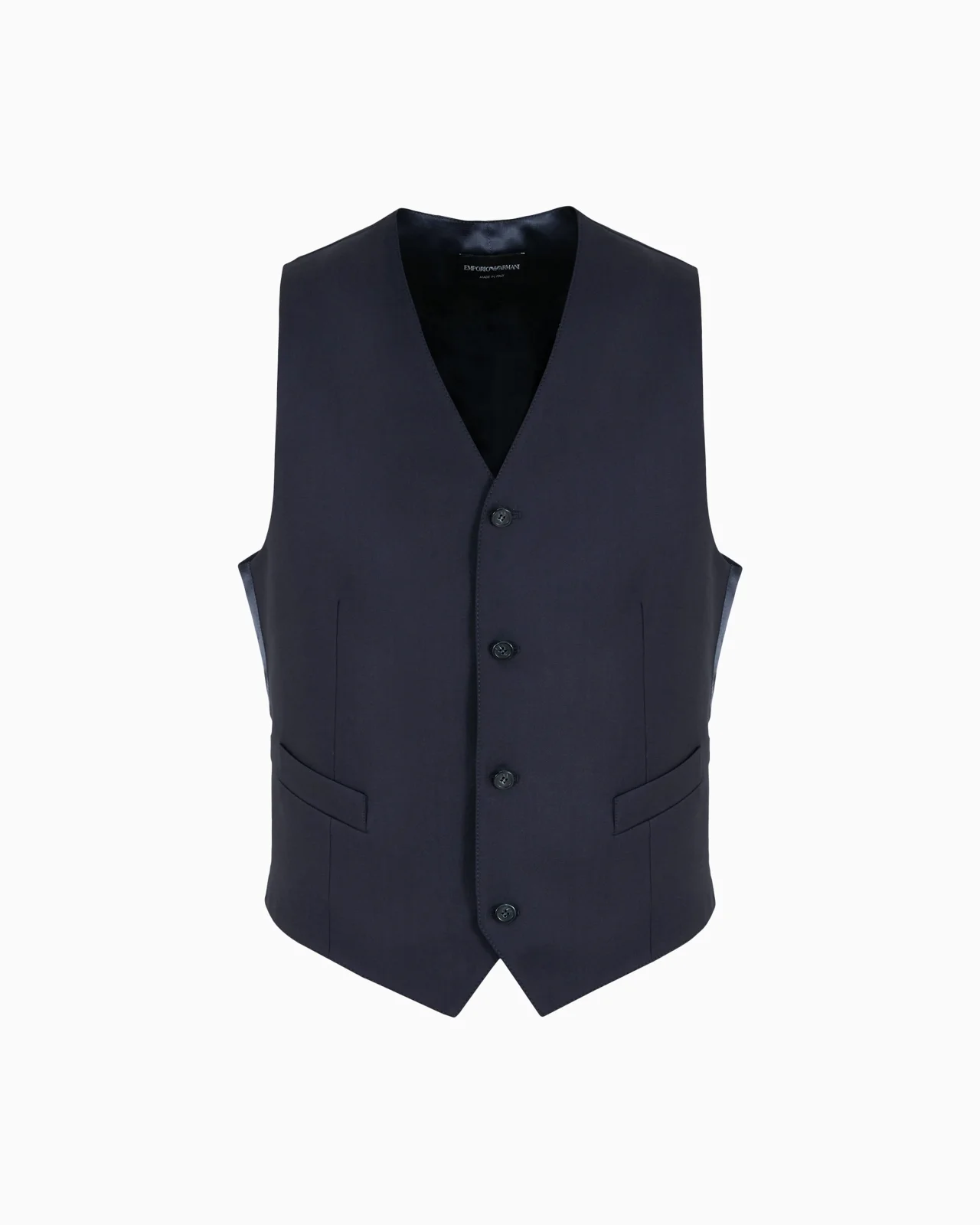 Made from worsted light wool, this elegant, single-breasted gilet features a glossy satin back. The garment features a V neck, single-breasted buttoning, side pockets and a back strap. This item belongs to the Essentials clothing selection, the Emporio Armani capsule collection that is an evergreen statement of style: an ongoing collection with clean, well-designed shapes for a wardrobe that meets the demands of any season. These “essential”, versatile pieces are a must-have for the male wardrobe. Product Code: 01K020010471922 Details Composition 100% Virgin Wool Light wool V neck Sleeveless Buttoned, single-breasted closure Two side pockets Satin back Adjustable strap Lined garment Made in Italy Fitting The model is 188 cm tall and is wearing size 48/M (Italian Size)