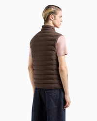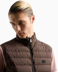 Sleeveless full-zip down jacket in quilted nylon with eagle logo patch