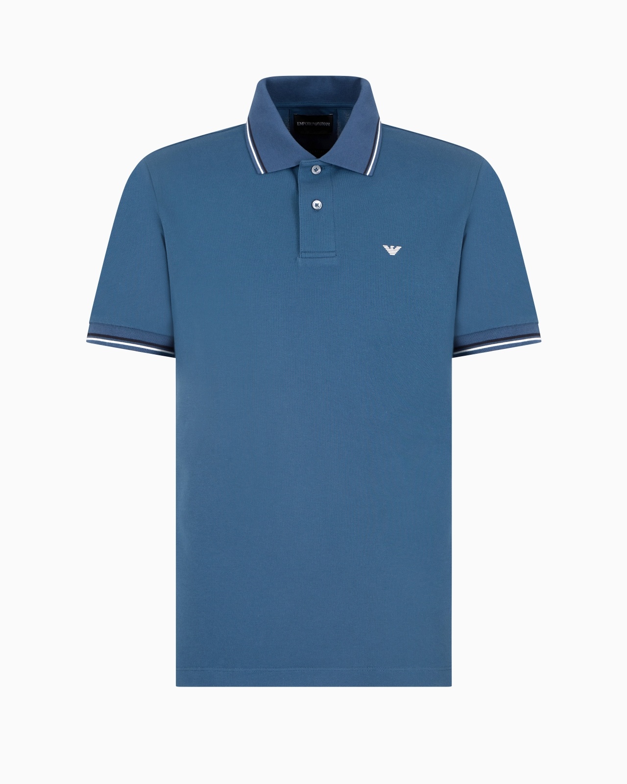 This slim-fit men’s polo shirt is made of stretch cotton pique and features a contrasting iconic eagle on the chest. This item belongs to the Essentials clothing selection, the Emporio Armani capsule collection that is an evergreen statement of a style: an ongoing collection with clean, well-designed shapes for a wardrobe that meets the demands of any season. These “essential”, versatile pieces are a must-have for the male wardrobe. Slim fit Pique Polo-shirt collar Partial closure with buttons Short sleeves Eagle embroidery on the chest Side slits at the hem Product Code: 8N1FB41JPTZSB150