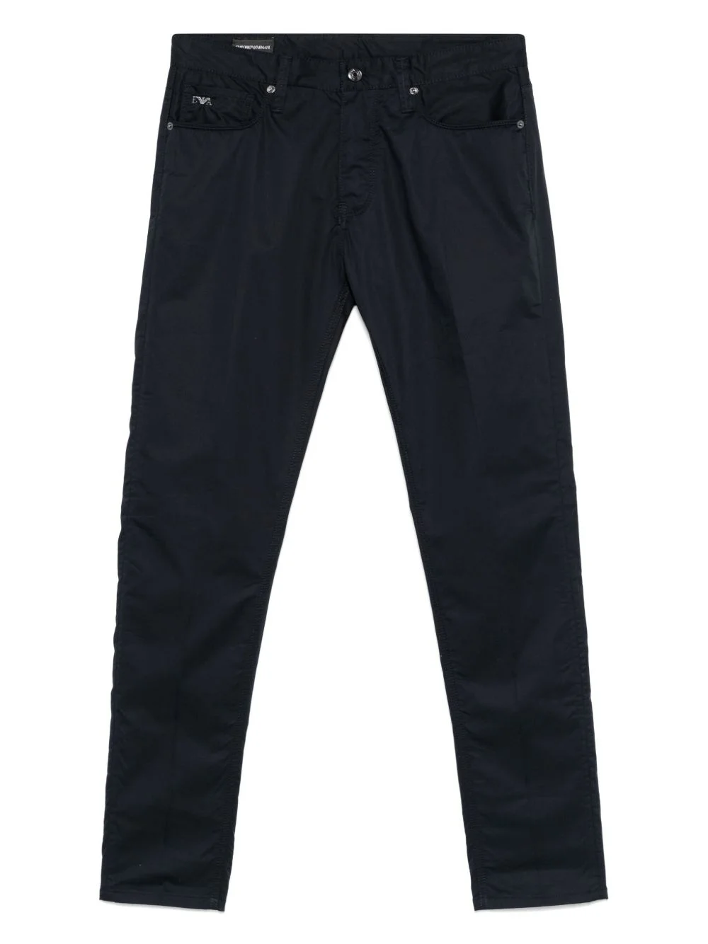 slim-fit trousers Highlights - Navy blue - Concealed fly and button fastening - Classic five pockets - Logo patch to the rear Imported Composition Cotton 100% SIZE & FIT Model measurements Height 6 ft 2 in(1.87 m) Bust/Chest 38.97 in(99 cm) Hips 37.99 in(96.5 cm) Waist 29.52 in(75 cm) FittingInformation Designed for a slim fit, offering a comfortable fit that sits just away from the leg Made from a lightweight non-stretch fabric
