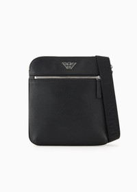 Flat, regenerated-leather shoulder bag made from certified recycled material, perfect for daily living. Zipped closure and outer pocket. Every product made from regenerated leather is the result of an eco-sustainable process that re-purposes left-over leather, processed and assembled without using any adhesive whatsoever and very conscious of water conservation. Not wasting resources helps to make this leather an environmentally friendly material, yet it retains the same qualities of real leather, both to the eye and to the touch. A collection of accessories created to satisfy the requirements of the Emporio Armani man who demands stylish, work-ready looks. The essential, alluring design features a Saffiano-print finish and is customised with a shaped, perforated metal eagle logo. Product Code: Y4M185Y138E181072 Details Composition 53% Polyamide 47% Polyester The material is made of 51% recycled leather Measurements: 23.5 x 23.5 x 4 cm Saffiano leather Eagle plate Zip closure Zipped outer pocket Adjustable logo webbing shoulder strap This bag is suitable for carrying: phone, wallet, keys