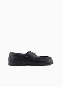 Boat shoes made from smooth-finish leather. A practical and sophisticated footwear style with a modern, elegant silhouette, with padded insole and rubber tread for an extremely comfortable wear. Product Code: X4C667XF803100002 Details Composition 100% Calf-skin leather Leather upper Rounded toe Lace-ups Made in Italy