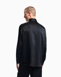 Shirt with concealed buttoning, made in a high-shine fabric with a distinctive micro-pleated weave that remains smooth to the touch. The keyword for the Emporio Armani FW25 man is seduction, a subtle art expressed through words, gestures and styles that draw inspiration from refined settings such as lounges, clubs or private circles where the mood flows in a relaxed and sophisticated way. Muted atmospheres where impeccable outfits of effortless elegance blend with the warm, dense tones of cognac, tobacco or chocolate. Micro-pleated weave Collar with pointed leaves Concealed buttoning Long sleeves Rounded cuffs with button Back yoke Product Code: EM003630TE17057UC001