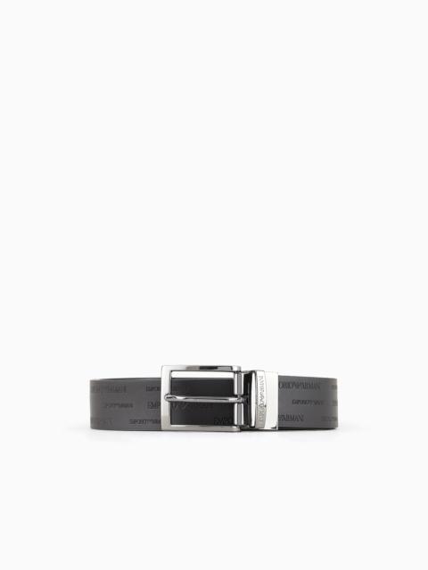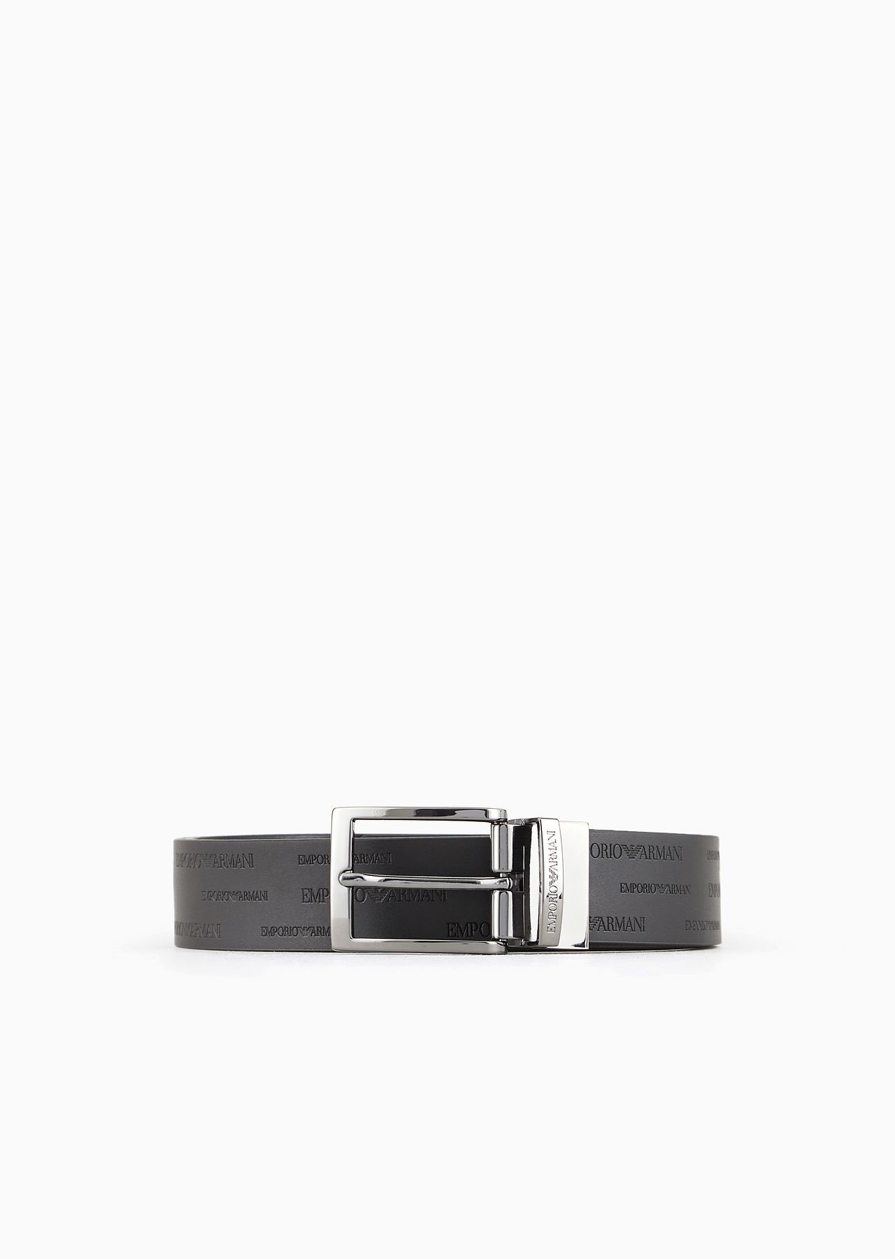 This reversible belt features smooth leather on the outer side and embossed, all-over, Emporio Armani lettering on the inner side, so you can choose which colour and pattern to wear based on your look. Product Code: Y4S426YTU5J188045 Details Composition 100% Bovine leather Measurements: 125 x 3.5 cm Leather Reversible One smooth side One side with all-over logo lettering Metal buckle Made in Italy