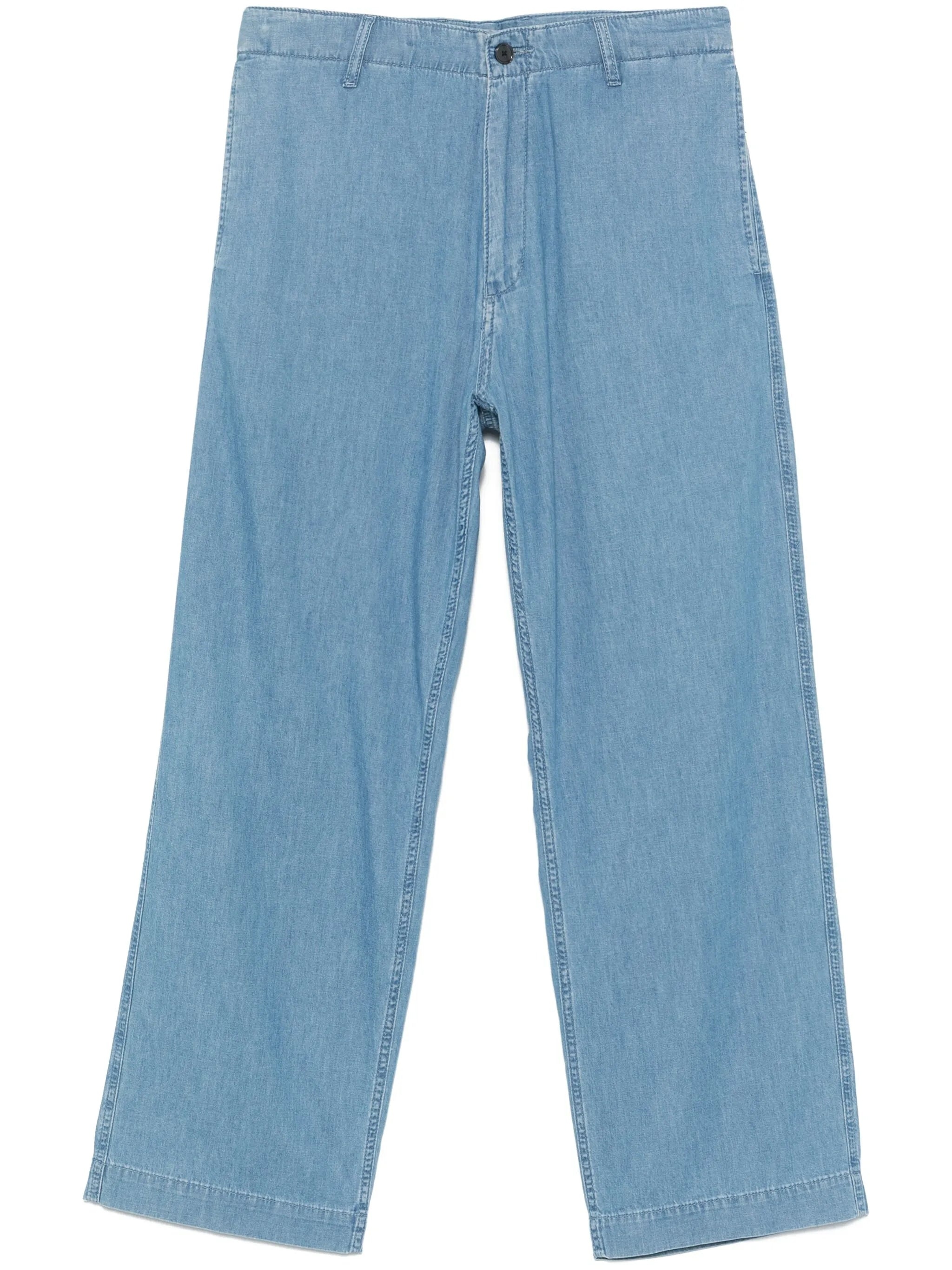 light blue concealed fly and button fastening two side slit pockets two rear flap pockets logo patch to the rear - Color: BLUE - Made in: Egypt - Designer Style ID: AF13910 EM001249 MB003 Composition and care Organic Cotton: 100.0%