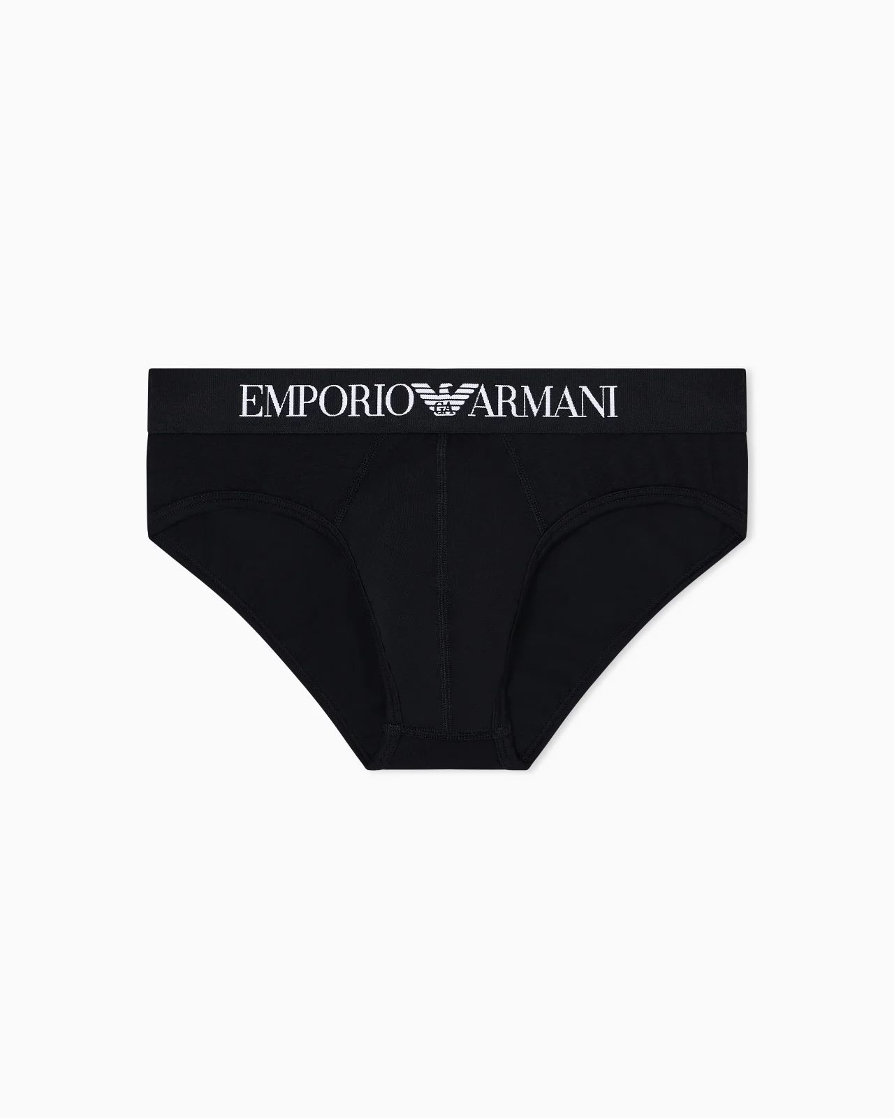 Briefs made of stretch cotton jersey with a logo elasticated waist. This item belongs to the Essentials clothing selection, the Emporio Armani capsule collection that is designed for a wardrobe that meets the demands of any season. These “essential”, versatile pieces are a must-have for the male wardrobe. Stretch jersey Elasticated waist Product Code: EM000230AF14133UC001