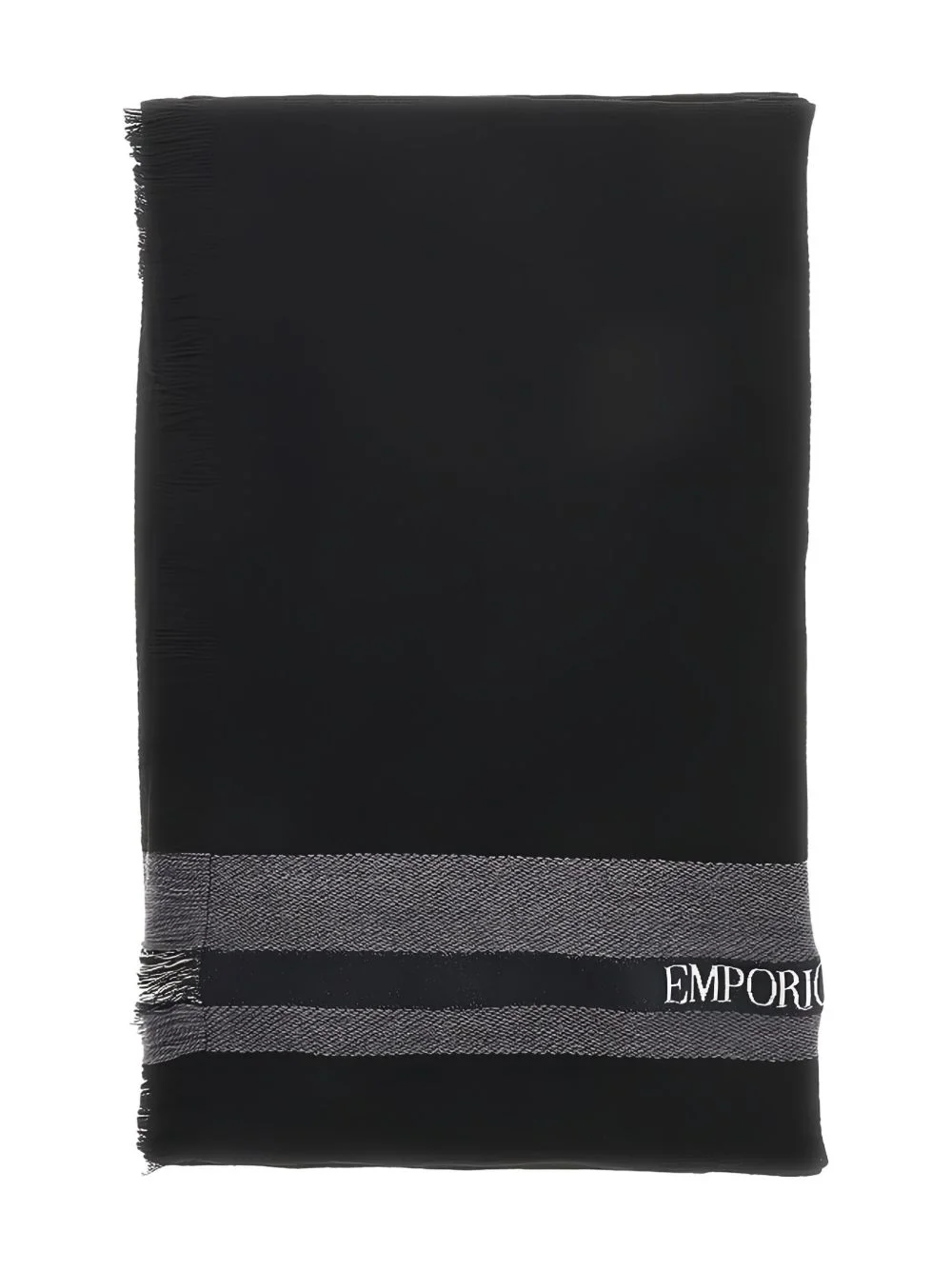 stripe-detail scarf Highlights - Black - Stripe detail - Fringed - Logo detail Made in Italy Composition Wool 97%, Silk 3% Washing instructions Read Manufacturer Guidelines