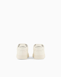 Cowhide sneakers with lace-up closure and enamelled eyelets matching the uppers. Logo back tab. These minimalist, modern sneakers are perfect for everyday city wear. Featuring the Emporio Armani logo on the side of the sole. Product Code: X4X598XF662100894 Details Composition 100% Calf-skin leather Supple leather upper Lace-up fastening Rounded toe Side logo on the sole Made in Italy
