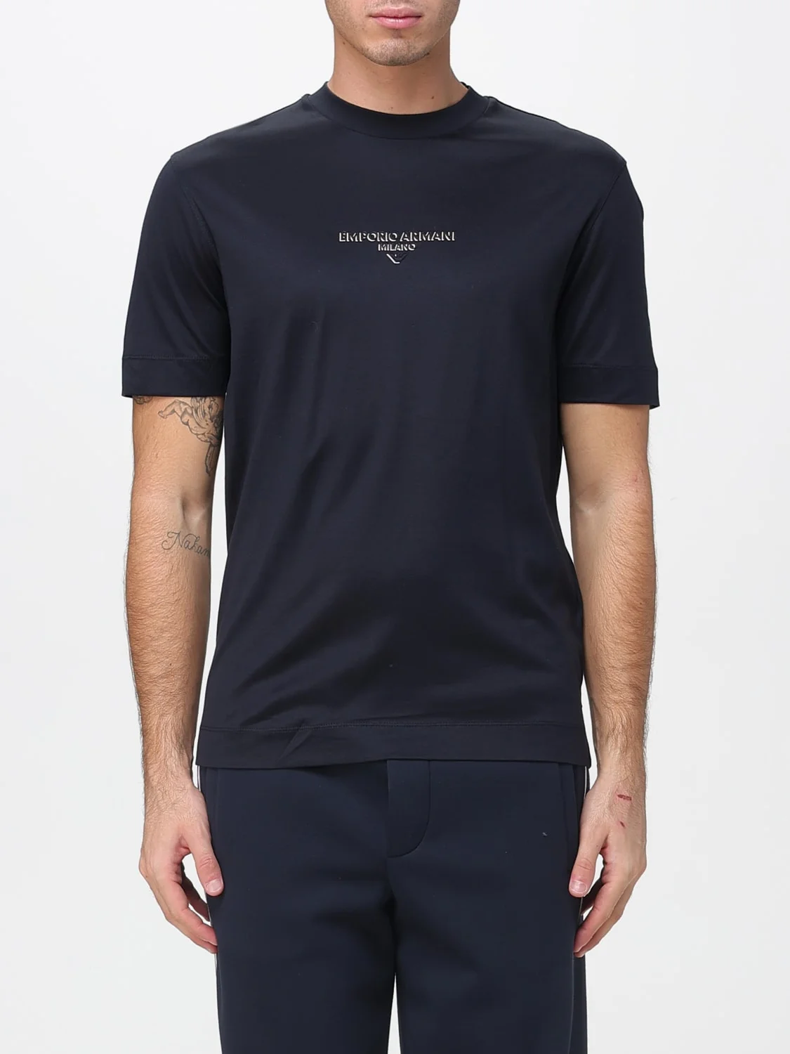 DESCRIPTION - Style: Casual, Sporty, Urban-street - Logo: Contrasting - Model: Crewneck - Neckline: Crewneck - Shoulders: Regular - Sleeves: Short - Bottom: With straight hemline - Materials: Lyocell - Pattern: Logo DETAILS AND CARE Composition LYOCELL70%COTTON30% SIZE AND FIT Sizes not available Size and fit Slim fit Designer code: EM002838AF10761 UB118 Giglio Code: H33434 Designer: Emporio Armani Collection: Emporio Armani Men Category: Clothing Emporio Armani