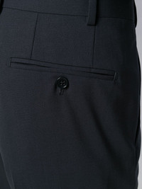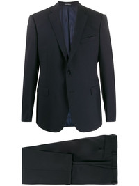 tailored suit By being strongly focused on both style and functionality, Giorgio Armani creates elegant designs for the modern man that combine traditional standards of production with a dash of irreverent attitude, perfectly showcased by this Navy virgin wool tailored suit. Featuring classic lapels, a front button fastening, long sleeves, front pockets, a waistband with belt loops, side pockets, a straight leg and a regular length. Imported Composition Outer: Virgin Wool 96%, Spandex/Elastane 4% Lining: Acetate 50%, Viscose 50% SIZE & FIT Model measurements Height 6 ft 1 in(1.86 m) Bust/Chest 35.43 in(90 cm) Hips 35.43 in(90 cm) Waist 29.92 in(76 cm) FittingInformation This piece fits true to size. We recommend you get your regular size Cut for a slim fit Made with a mid-weight non-stretch fabric Washing instructions Dry Clean Only