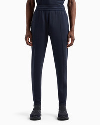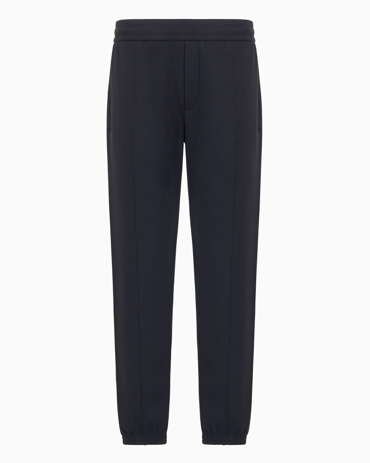 Modal-blend double-jersey joggers. The item belongs to this season’s Travel Essentials collection, the identity and personality of which are defined through a concept of travelling light. Travel in comfort with a dynamic wardrobe transformed through innovative cutting and materials: clothing and accessories designed for performance and leisure. The focus for the AW24 selection is wool yarn and its technical variations, created thanks to the refined blends of different wools, always alternated with nylon pieces. The capsule collection can also be worn in an urban setting and not just when travelling, highlighting the philosophy of the Emporio Armani man who’s always on the go. Product Code: EM000315AF101031UB118 Details Composition 52% Polyester 40% Modal 8% Elastane Double jersey Elasticated waist Inner drawstring Side pockets with zip Back welt pockets Collection logo patch Fitting The model is 188 cm tall and is wearing size 48/M (Italian Size)