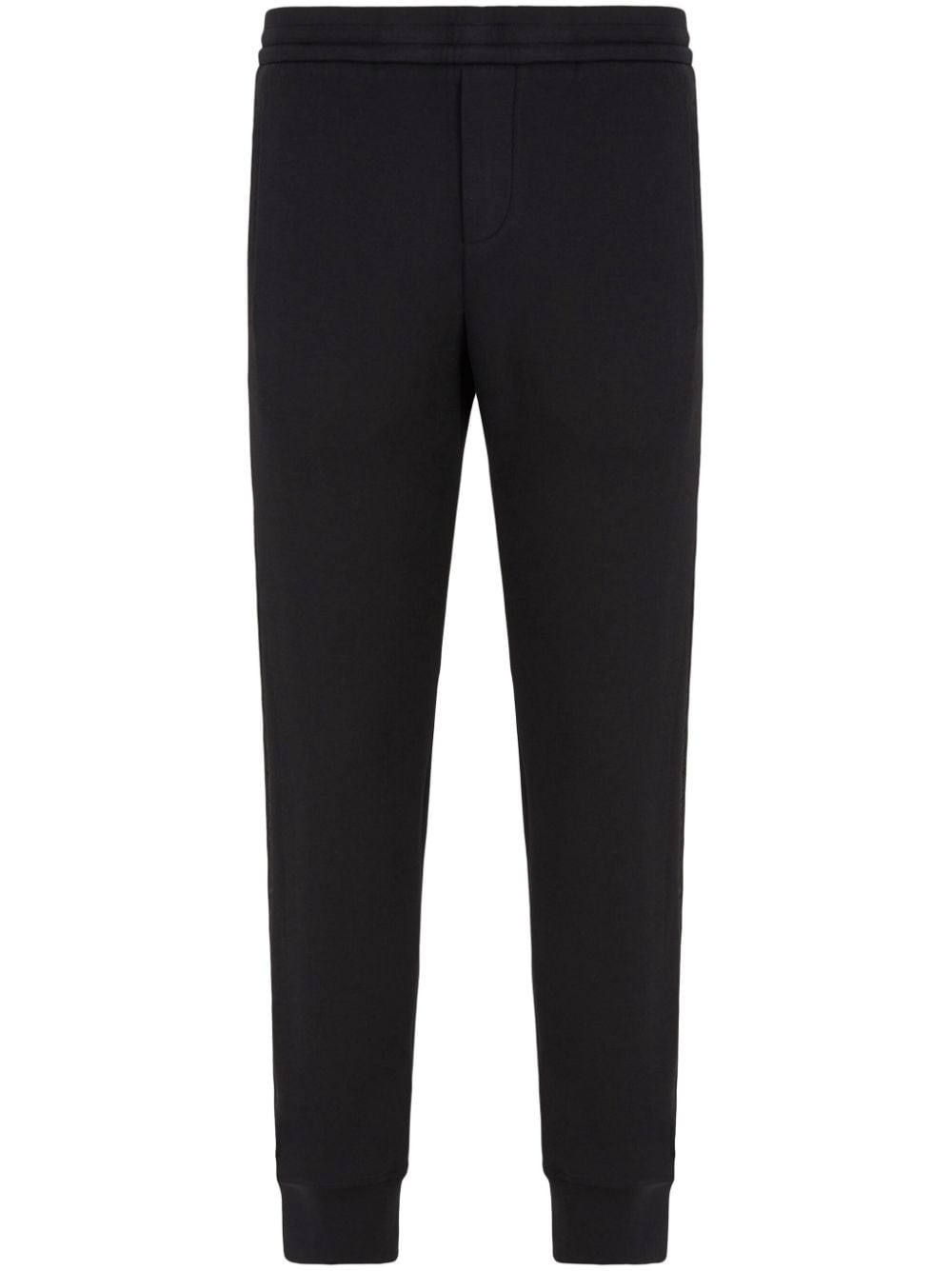 tapered track pants Highlights - Black - Cotton blend - Jersey texture - Elasticated waistband - Two side inset pockets - Two rear jetted pockets - Tapered leg - Elasticated ankles Imported Composition Cotton 76%, Polyester 18%, Spandex/Elastane 6%