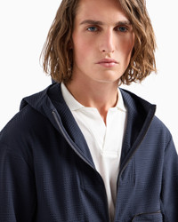 Technical-seersucker hooded blouson with zip