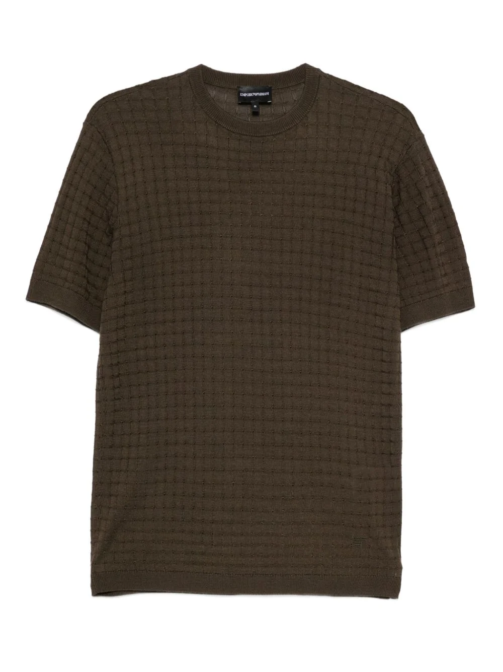 textured round-neck sweater Highlights - Green - Waffle texture - Short sleeves - Round neck - Knitted Imported Composition Polycarbonite 46%, Lyocell 33%, Wool 21% SIZE & FIT Model measurements Height 6 ft 0 in(1.84 m) Bust/Chest 35.82 in(91 cm) Hips 37 in(94 cm) Waist 28.34 in(72 cm) Washing instructions Read Manufacturer Guidelines