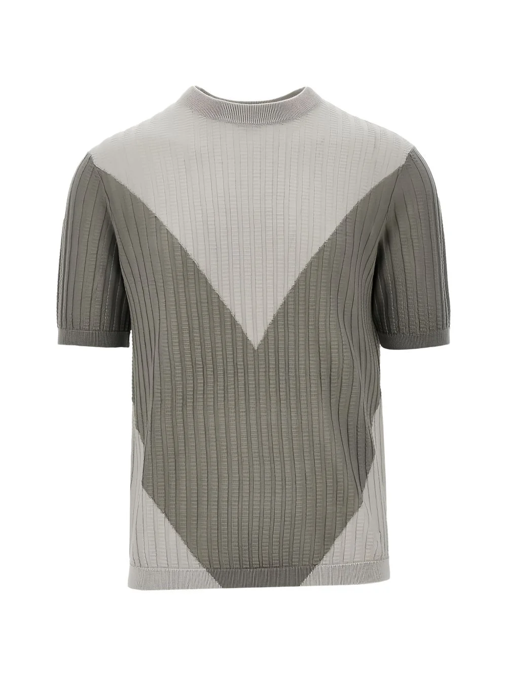 textured short-sleeved sweater Highlights - Grey - Textured knit - Short sleeves - Crew neck - Vertical ribbing Imported Composition Lyocell 55%, Wool 40%, Silk 5% Washing instructions Read Manufacturer Guidelines