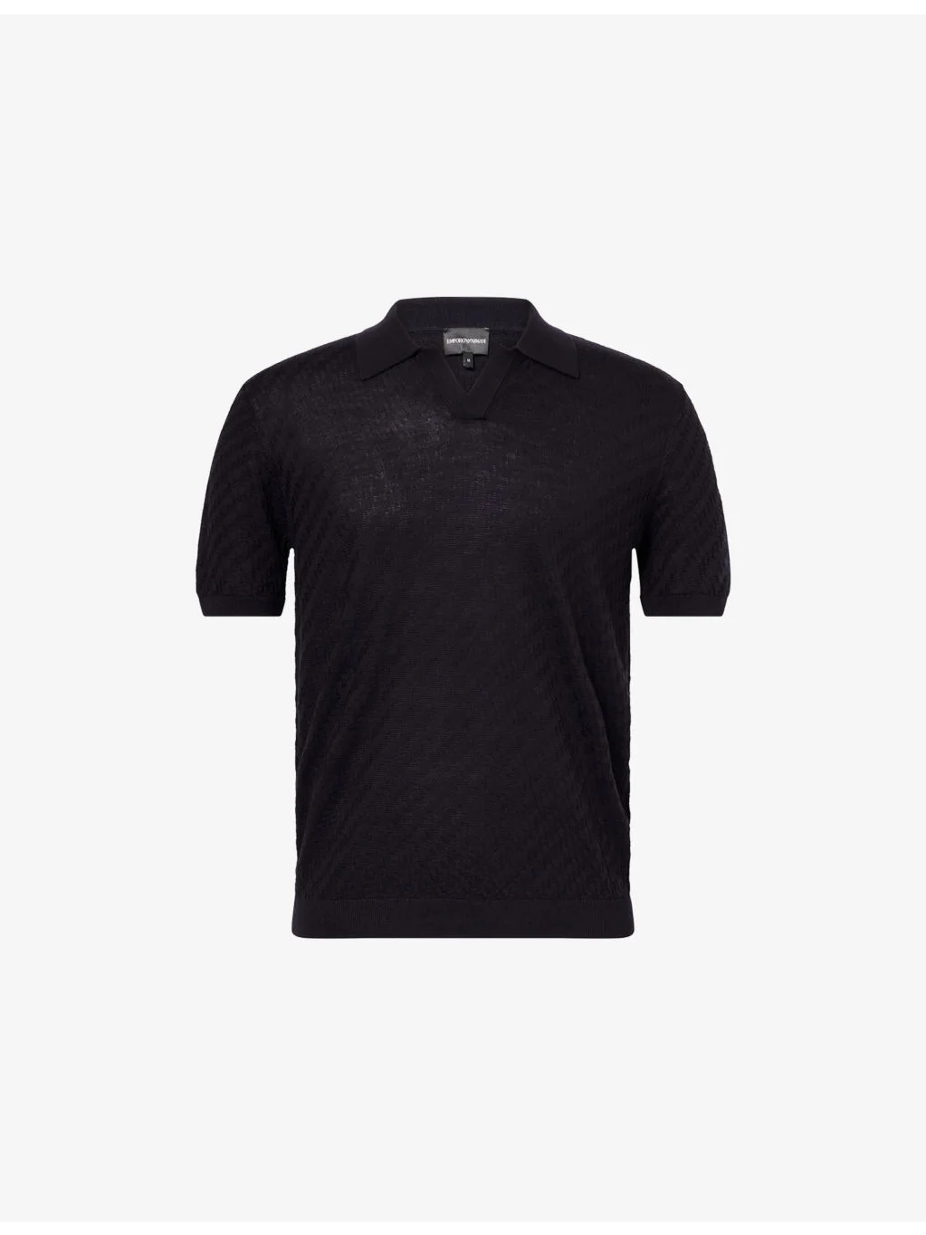 PRODUCT DETAILS - Emporio Armani knitted polo shirt - 47% acrylic, 34% lyocell, 19% wool; trims 46% acrylic, 28% lyocell, 18% wool, 7% polyamide, 1% elastane - Polo collar - Ribbed cuffs - Regular fit, V-neck, collar, short sleeves, textured, ribbed trims - Hand wash cold - Model is 6ft 2in/1.88m and wears a size medium - Midweight, stretchy Ref: R04569241