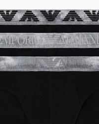 Three-pack of stretch cotton jersey briefs made from natural fibres from organic farming. Shiny-finish logo elasticated waist. Fabric: 68% organically grown cotton Three-pack Stretch jersey Logo waistband Product Code: EM000258AF18886MC061