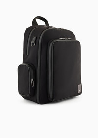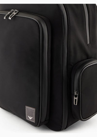 Double-compartment backpack with zip, side pockets, breathable mesh back and practical padded, adjustable shoulder straps. A compact accessory with ample capacity for short business trips. The Travel Essential AW24 selection is defined by a focus on practicality and style for even more function and sophistication: the essential lines, compact volumes, organised interiors and nylon construction define a line of accessories designed both for travel and city life. Each product comes with a rubberised patch with a dedicated logo. Product Code: EM000087AF104301UC001 Details Composition 88% Polyamide 12% Elastane Measurements: 30 x 40 x 15 cm Nylon Collection patch Zip closure Multiple compartments Padded shoulder straps Breathable mesh back Straps to join around the waist