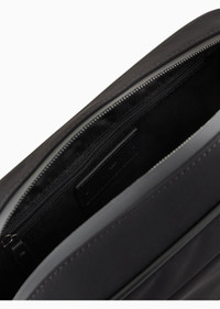 This indispensable nylon washbag holds all the must-haves for your grooming routine. A practical and stylish travel companion. Practical wristlet included. The Travel Essential AW24 selection is defined by a focus on practicality and style for even more function and sophistication: the essential lines, compact volumes, organised interiors and nylon construction define a line of accessories designed both for travel and city life. Each product comes with a rubberised patch with a dedicated logo. Product Code: EM000090AF104301UC001 Details Composition 88% Polyamide 12% Elastane Measurements: 22.5 x 5 x 12 cm Nylon Collection patch Zip closure Front pocket with invisible zip Wristlet