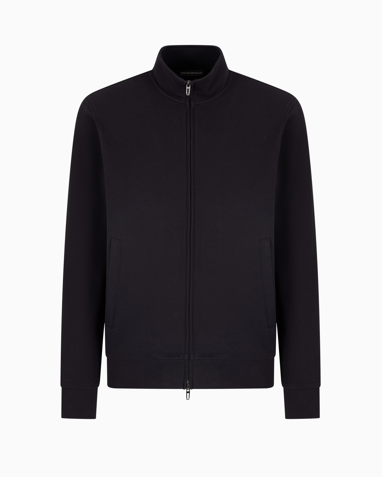 Full-zip sweatshirt made of jersey featuring a waffle-effect weave. The item belongs to this season’s Travel Essentials collection, the identity and personality of which are defined through a concept of travelling light. Travel in comfort with a dynamic wardrobe transformed through innovative cutting and materials: clothing and accessories designed for performance and leisure. The SS25 selection is crafted for city living, centring the urban traveller who likes to explore both the world and their home city, highlighting the philosophy of the Emporio Armani man who is continuously on the move. Regular fit Jersey Waffle texture Full zip Side pockets Long sleeves Collection logo patch on the back Unlined garment Product Code: EM000944AF13358UB118