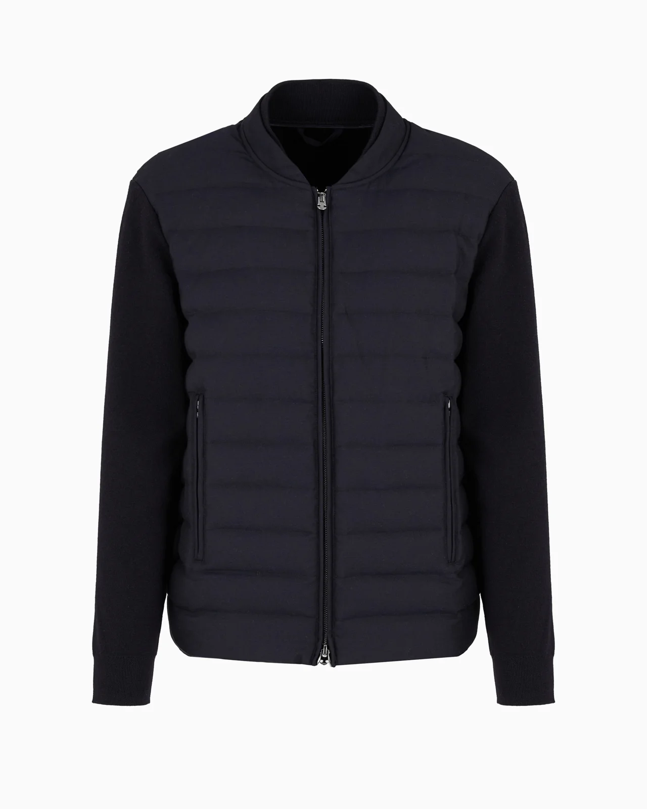 Blouson with plain-knit sleeves and back, with padded, quilted insert in a virgin wool-blend technical fabric on the front. The item belongs to this season’s Travel Essentials collection, the identity and personality of which are defined through a concept of travelling light. Travel in comfort with a dynamic wardrobe transformed through innovative cutting and materials: clothing and accessories designed for performance and leisure. The focus for the AW24 selection is wool yarn and its technical variations, created thanks to the refined blends of different wools, always alternated with nylon pieces. The capsule collection can also be worn in an urban setting and not just when travelling, highlighting the philosophy of the Emporio Armani man who’s always on the go. Product Code: EM000128AF104581UB118 Details Composition 70% Virgin Wool 30% Polyester Weft in knit Padded insert in technical fabric Zip closure Long sleeves Side pockets with zip Collection logo patch Fitting The model is 188 cm tall and is wearing size 48/M (Italian Size)