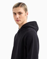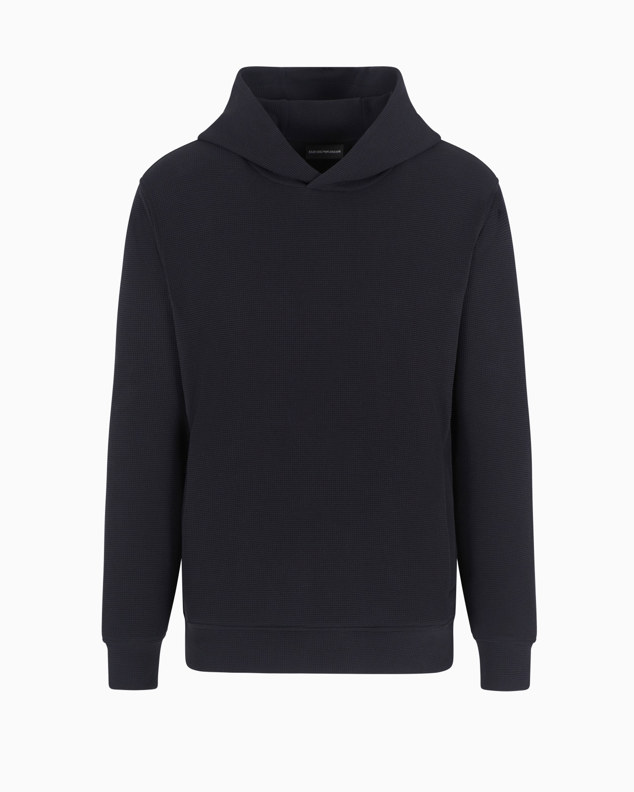 Hooded sweatshirt made of jersey featuring a waffle-effect weave. The item belongs to this season’s Travel Essentials collection, the identity and personality of which are defined through a concept of travelling light. Travel in comfort with a dynamic wardrobe transformed through innovative cutting and materials: clothing and accessories designed for performance and leisure. The SS25 selection is crafted for city living, centring the urban traveller who likes to explore both the world and their home city, highlighting the philosophy of the Emporio Armani man who is continuously on the move. Regular fit Jersey Waffle texture Hood Side pockets Long sleeves Collection logo patch on the back Unlined garment Product Code: EM000951AF13358UB118