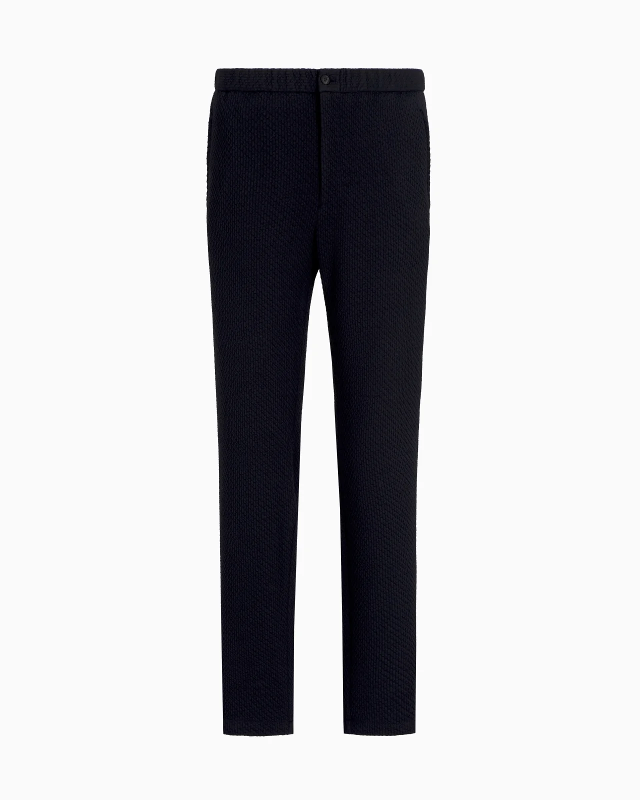 Linear-fit trousers with side zip pockets. The fabric is characterised by a unique embossed, three-dimensional weave that bestows refinement and texture to the style. A refined, sophisticated, lightweight item overflowing with comfort and elegance, making it the full embodiment of Emporio Armani style. Stretch knit Embossed 3D effect Closure with zip, button and back button Side pockets with zip Back welt pockets Product Code: EM001611TE13908UB109