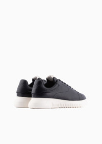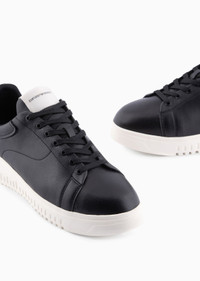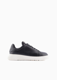Sneakers are no longer just for sports. These sneakers can be worn just as easily as urban and casual wear as they can in moments where you need a sports chic outfit. This modern style is defined by an asymmetric design and provocative volumes. They are lightweight and flexible, thanks to the combination of oversized, knurled TPU soles with ultra-lightweight EVA midsoles. Sneakers in tumbled leather with lace-up fastening and iconic eagle at the back. Made in Italy. Product Code: X4X264XF532100002 Details Composition 100% Bovine leather Leather Solid color Rubber sole Laces Round toeline Brand logo