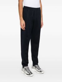 twill-weave trousers Highlights - Navy blue - Twill weave - Elasticated waistband with internal drawstring - Raised seam detail - Two side inset pockets - Two rear welt pockets - Silver-tone logo plaque - Elasticated ankles Imported Composition Outer: Polyester 72%, Wool 21%, Elastane 6% Lining: Cotton 100%, Polyester 74%, Wool 21%, Elastane 6% SIZE & FIT Model measurements Height 6 ft 2 in(1.87 m) Bust/Chest 36.22 in(92 cm) Hips 35.43 in(90 cm) Waist 29.13 in(74 cm) FittingInformation Designed for a relaxed tapered leg, allowing a comfortable loose fit above the knee with a closer fit towards the calves Adjust this piece’s waistband to your preference using the drawstring Made from a midweight stretch fabric, this piece offers elasticity and flexibility when worn