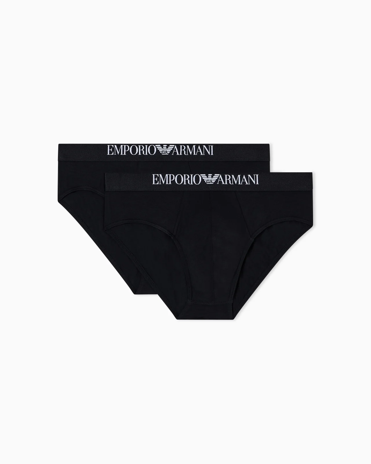Two-pack of stretch viscose jersey briefs with an elasticated logo waistband. This item belongs to the Essentials clothing selection, the Emporio Armani capsule collection that is designed for a wardrobe that meets the demands of any season. These “essential”, versatile pieces are a must-have for the male wardrobe. Two-pack Stretch jersey Elasticated waist with logo Product Code: EM000251AF14134MC005