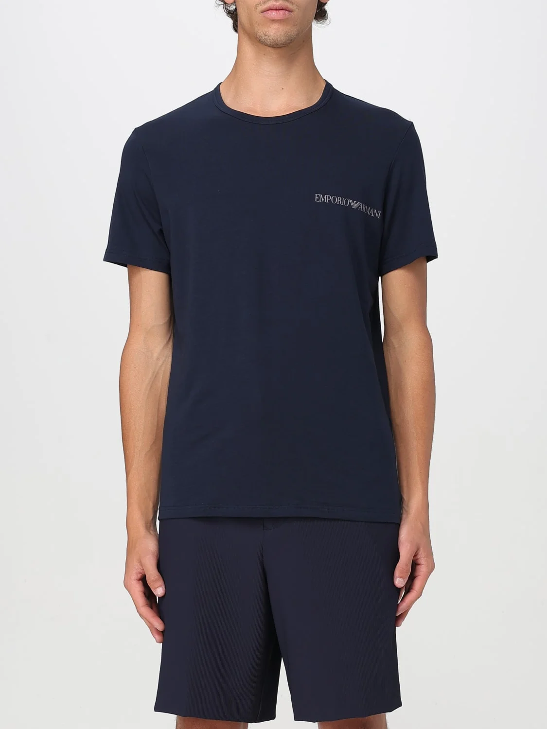 DESCRIPTION - Style: Casual - Logo: Contrasting - Model: Crewneck - Neckline: Crewneck - Shoulders: Regular - Sleeves: Short - Bottom: With straight hemline - Materials: Cotton - Pattern: Logo DETAILS AND CARE Composition 5% EA 95% CO SIZE AND FIT Sizes not available Size and fit Regular fit Designer code: EM000391AF10779 MB143 Giglio Code: G82946 Designer: Emporio Armani Collection: Emporio Armani Men Category: Clothing Emporio Armani