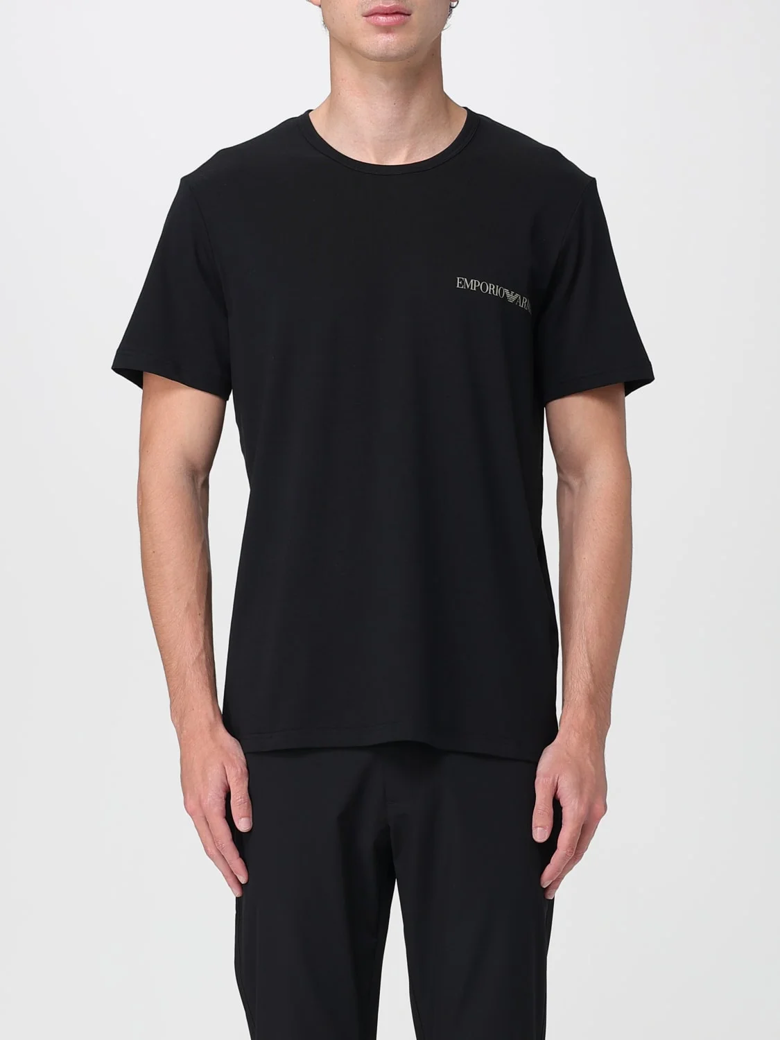 DESCRIPTION - Style: Casual - Logo: Contrasting - Model: Crewneck - Neckline: Crewneck - Shoulders: Regular - Sleeves: Short - Bottom: With straight hemline - Materials: Cotton - Pattern: Logo DETAILS AND CARE Composition 5% EA 95% CO SIZE AND FIT Sizes not available Size and fit Regular fit Designer code: EM000391AF10779 MC005 Giglio Code: G82946 Designer: Emporio Armani Collection: Emporio Armani Men Category: Clothing Emporio Armani