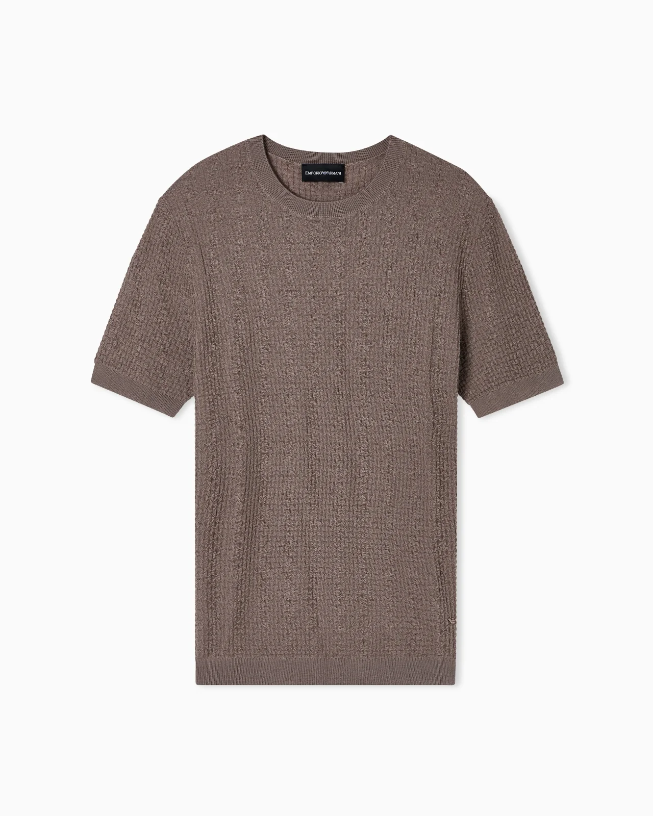 Crew-neck jumper made from a plain-knit pure wool. The perfect piece to wear either on its own or under outerwear. This refined style can be worn anywhere and with anything. Plain knit Crew neck Short sleeves Micro eagle embroidered on the left hem Product Code: EM001625AF11853F6144