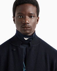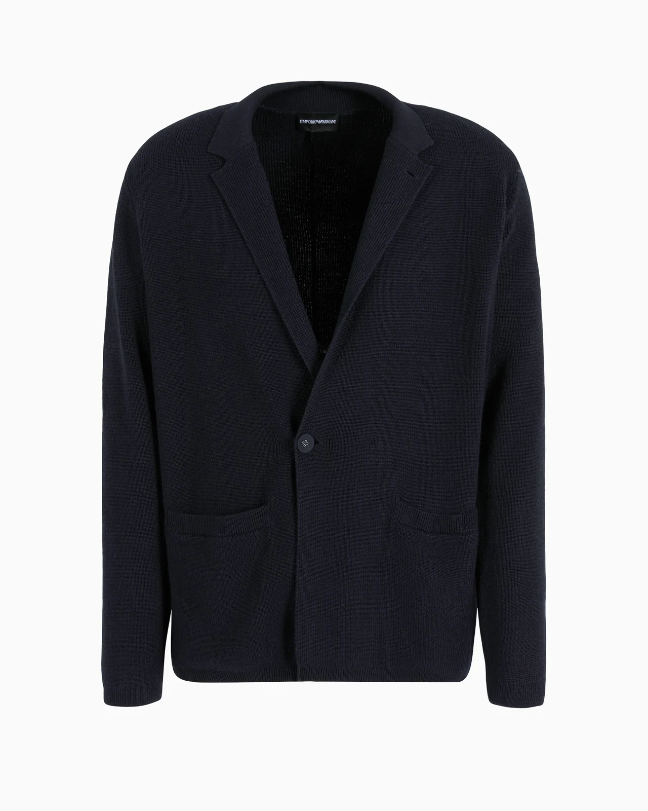 Double-breasted blazer in a corn-on-the-cob stitch knit made of a virgin wool and cotton blend. A comfortable piece for layering thanks to its soft, enveloping texture that makes it perfect as a cardigan or as an outerwear item. Product Code: 6D1GXX1MKEZ10920 Details Composition 67% Virgin Wool 33% Cotton Fineness: 12 Weft in knit Cob stitch Double-breasted Long sleeves Side pockets Ribbed trim Fitting The model is 188 cm tall and is wearing size 48/M (Italian Size)