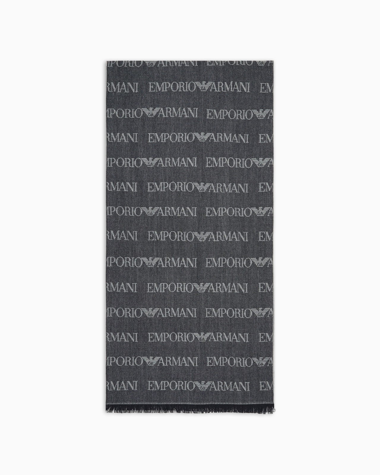This virgin wool blend scarf features a distinctive, contrasting jacquard logo. Fringes emphasise the accessory’s classic style. This accessory belongs to the Essentials selection, the Emporio Armani capsule collection that is an evergreen statement of style: an ongoing collection with clean, well-designed shapes for a wardrobe that meets the demands of any season. Measurements: 185 x 43 cm Jacquard Logo lettering Fringed trim Made in Italy Product Code: 625060CC78600635