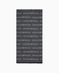 VIRGIN-WOOL BLEND SCARF WITH JACQUARD LOGO LETTERING AND FRINGES