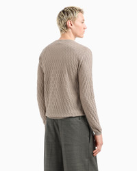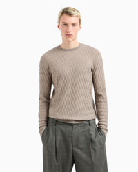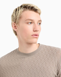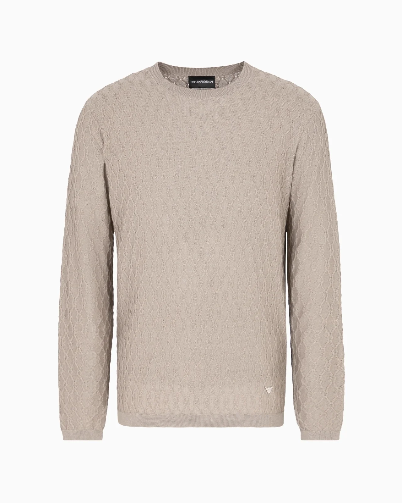 Crew-neck jumper made of pure virgin wool with a particularly tactile texture, with an embossed jacquard pattern that creates a natural intersection of structured and sophisticated motifs all over. Rib-knit cuffs and hem. Fineness: 14 Jacquard Embossed pattern Crew neck Long sleeves Rib-knit cuffs and hem Micro-eagle embroidered at the left hem Product Code: EM000883AF13851F1066