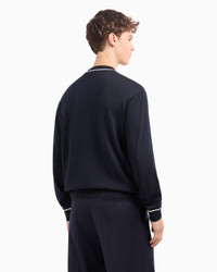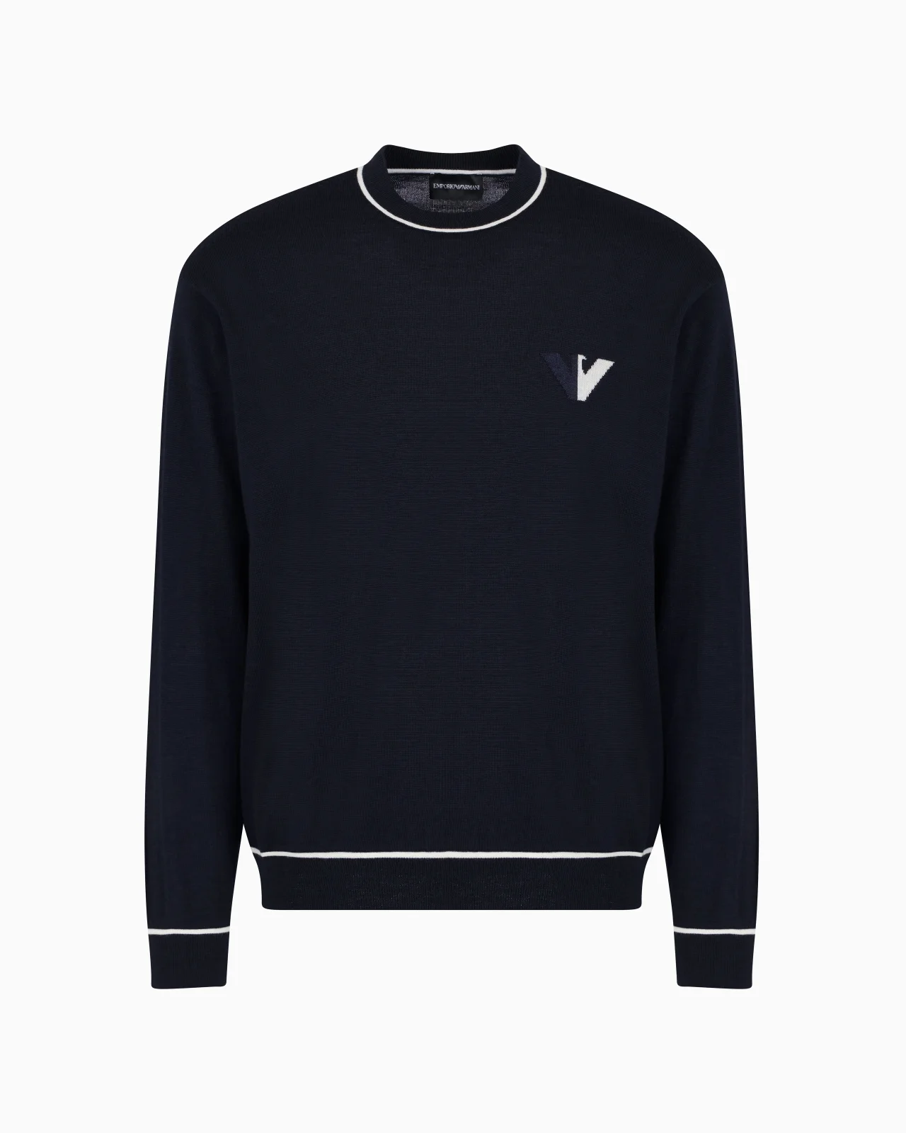 Crew-neck jumper in pure virgin wool, featuring a jacquard logo detail: depending on the style, there is either logo lettering is on the back neck trim or a two-tone eagle logo on the chest. Product Code: 6D1MXH1MJLZ1F939 Details Composition 100% Virgin Wool Fineness: 5 Weft in knit Crew neck Long sleeves Ribbed trim Jacquard logo Fitting The model is 188 cm tall and is wearing size 48/M (Italian Size)